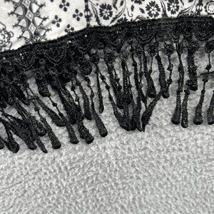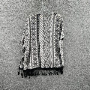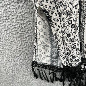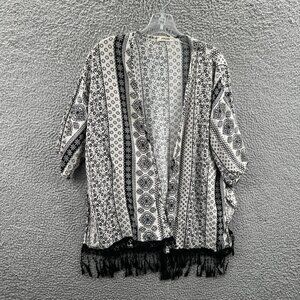 Persaya Womens Cardigan Top Extra Large Black White 3/4 Sleeve Open Front Fringe