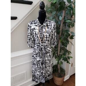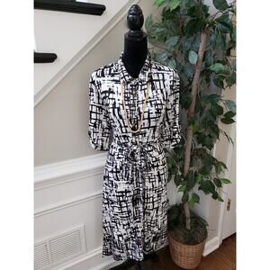 Perseption Concept A Line Shirt Dress Women's XL White Black Button Through