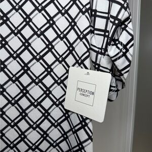 Elevate your wardrobe with this stylish black and white top from Perseption Concept. Perfect for any occasion, this top offers a chic and modern look with a relaxed fit.