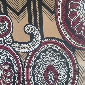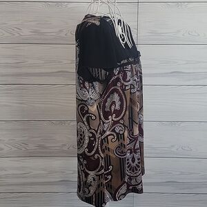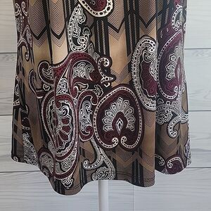 Casual dressy multicolored top by Perseption Concept with a relaxed fit, short sleeves, and a contrasting black square neckline. Great pre-owned condition.