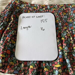 Tiered skirt by Perseverance London in Multicolor Floral print. Bright blooms enliven this sweetly smocked skirt. Mini length. Gently worn with no visible flaws. Measurements in photos. Size is missing, but I believe it is a size 8 - please refer to measurements to ensure fit.