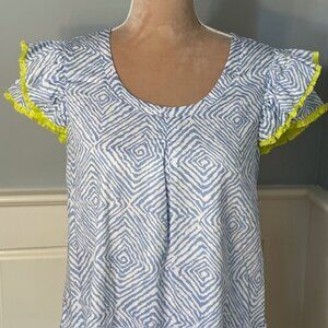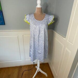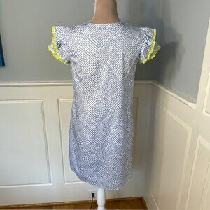Persifor Clare Dress Flutter Sleeve Shift Dress 100% Cotton Block Print Small
