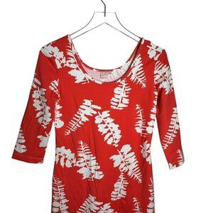 Persifor Red & White Fern Print Dress 3/4 Sleeve Scoop Neck size small Stretchy