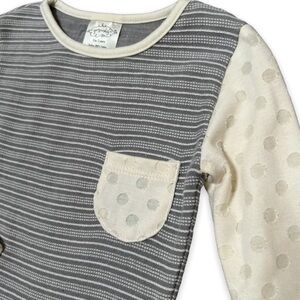 “Haven” pocket gray and cream textured stripe knit bell sleeve top.