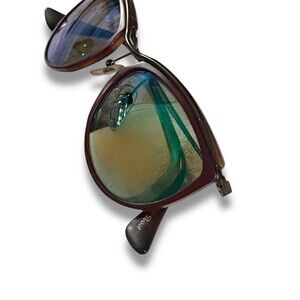 Persol Sunglasses 3082-S Matte Burgundy Cat Eye Green Reflective Lenses Italy