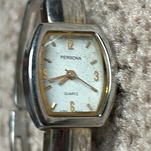 Gently used Persona women’s vintage dainty two tone bracelet watch one size extends see pictures for condition and measurements needs a new battery