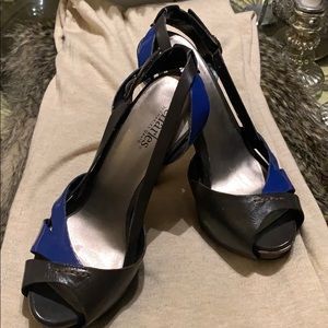 This blue and dark gray heels or sandals ready to wear in a very good conditions