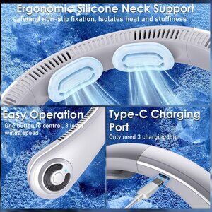 • powered by 2 brushless, silent motor and features 74 air outlets that provide full surround cooling for your neck, face, and even the back of your neck