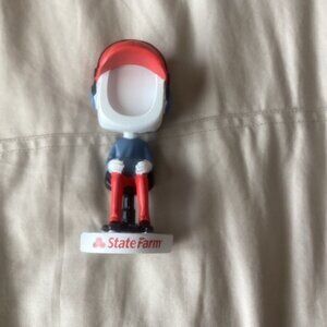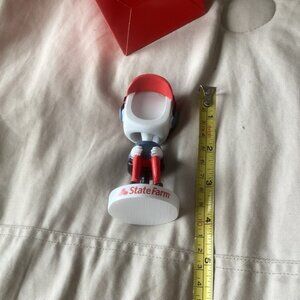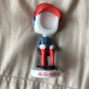 Have that gamer in your family? The one who loves video games, can’t be pulled away from the TV. This is the perfect gift. State Farm bobblehead featuring a red cap and blue outfit. Slide your perfect photo of your favorite gamer into it to make a funny personalized gift. New in box