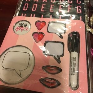 Patches, buttons and stickers so you can personalize almost anything. it also includes a sharpie. Brand new never opened.