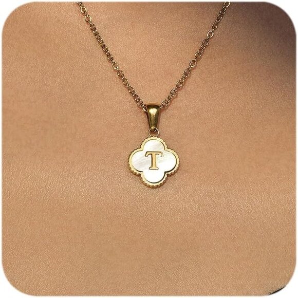 Features: Delicate four-leaf clover pendant with a white shell background and a gold-plated initial, hanging from a sleek cable chain with a spring ring clasp. Perfect for everyday elegance or special gifting.