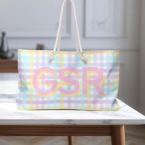 Personalized Bag, Weekender Bag, Custom Bag, Monogram Bag, Gingham Weekender Bag