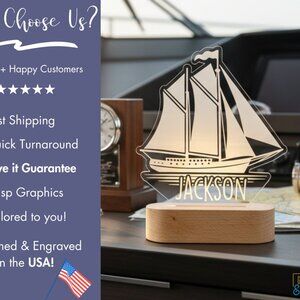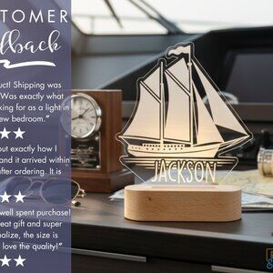 Personalized Boat Night Light – Custom LED Lamp for Kids