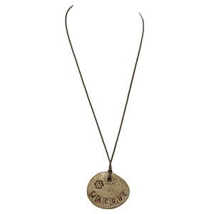 Slight wear on the back of the pendant; measurements: pendant diameter = 2 inches, chain length = approx. 22 inches.