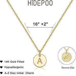 Features: Elegant 14K gold plated disc pendant with initial, suspended on a delicate yet strong cable chain. Lobster clasp makes it easy to put on and take off. The chain and pendant are crafted from brass with a gold finish that resists tarnishing, ensuring lasting shine. Comes packaged beautifully — ready for gifting!