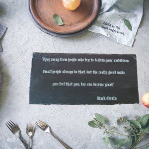Personalized Laser engraved Slate Cheeseboard. Put your favorite Cheese, snacks, on Display with your favorite quote, logo, or your monogram. Show your tapas off in style.12x5.5 inches. Leave your QUOTE, NAMES or LOgo in a message to me. Takes 3 Days to process.
