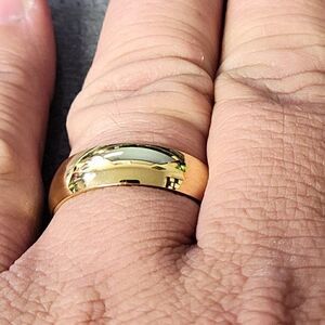 This ring has a dome design and is a comfort fit band.