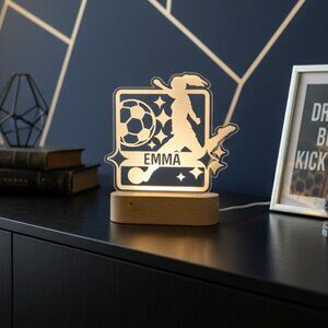 Personalized Girl Soccer LED Night Light – Unique Sports Room Decor