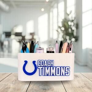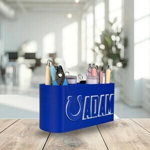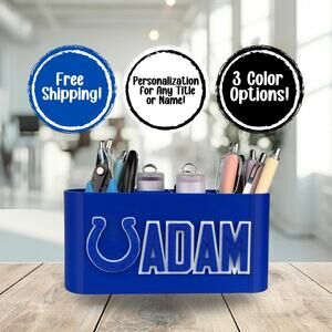 -🎨 Make It Yours: You can personalize your Indianapolis Colts desk organizer with your name, title (e.g., ""Dr."", ""CEO"", ""Coach""), or a special message. Just share your details when you place your order! (Text me after your purchase about color and personalization!)