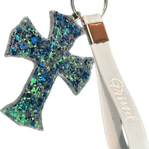 Keychains made of epoxy resin with glitter or color, your choice. Each key chain has an wristlet with a positive affirmation. You choose color and wristlet. Can also add initial in complimentary color for a nominal fee. Feel free to special order and enjoy a personalized keychain.