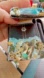 adorned with turquoise stone and gold embellishments. Features intricate beadwork and sparkling details.