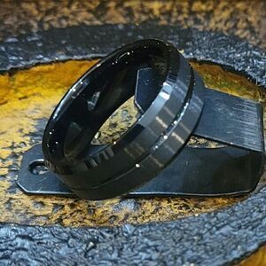Personalized Men's Black Wedding Ring Band With a Black Center Groove Outer Band