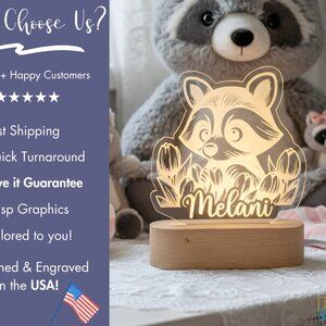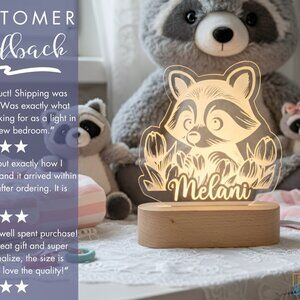 Personalized Raccoon Night Light – Custom LED Raccoon Room Decor