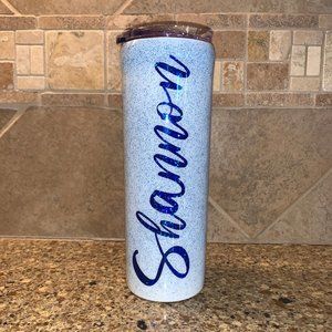 My gorgeous glittered 20oz tumblers are handmade and sealed with food safe epoxy for a beautiful glass like finish! This tumbler is stainless steel, double walled and vacuumed insulated. It's sure to keep your favorite drink hot or cold for hours! I can customize tumblers in different colors, quotes, logos, sorority, fraternity and or names.