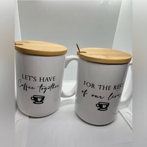 Set of 15 oz personalized Mugs with Bamboo Lids & Stainless Steel Spoons.