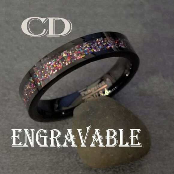 Personalized Engraved Men's Purple and Red Opal Tungsten Wedding Ring Band
