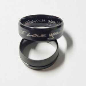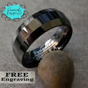Personalized Men's Real Black Tungsten Wedding Ring - Step edges