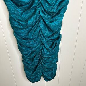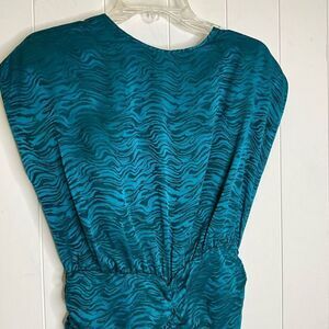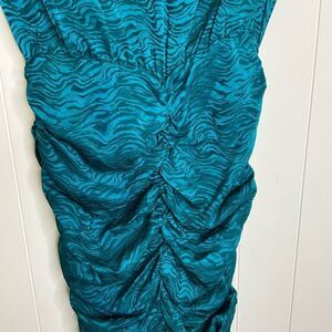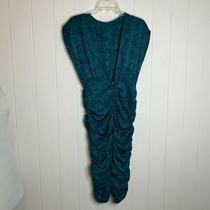 Perspective Womens Size 5 Ruched 100% Silk Sleeveless Dress Green Cut Out Back