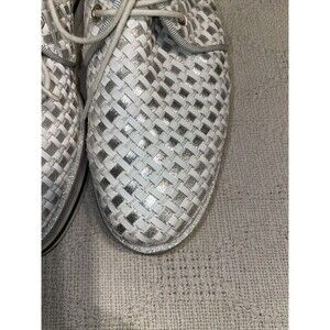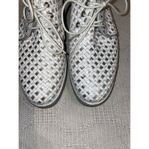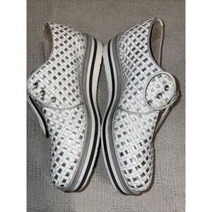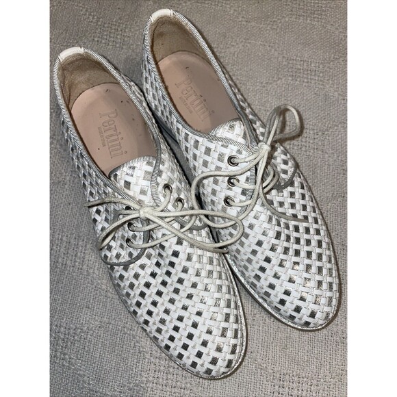 This womens white silver leather pair of Pertini Athleisure shoes look great! Just a few scuffs.