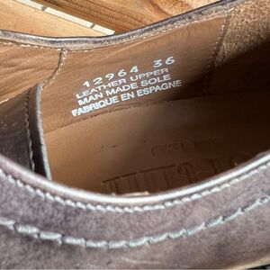 Step up your style with these gorgeous Pertini lace-up oxfords. Handcrafted in Spain, these shoes feature premium leather uppers in a rich, dark weathered gray finish with classic brogue detailing. The low block heel adds a touch of elegance while maintaining comfort for all-day wear. Perfect for both professional and casual looks — pair them with slacks, skirts, or even jeans for a chic, polished vibe.