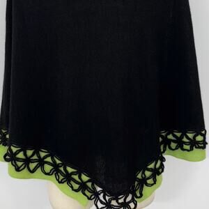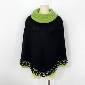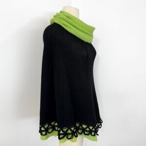 Peru Etnico Baby Alpaca Wool Knit Turtleneck Poncho Black Green OS