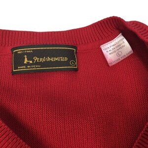 Peru Unlimited Men's V Neck Sweater Pima Cotton Size Large Red Long Sleeve