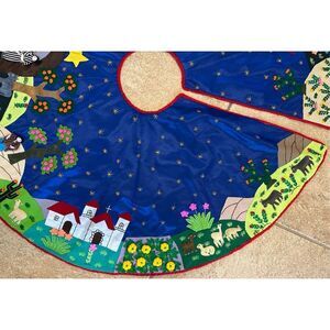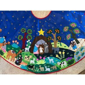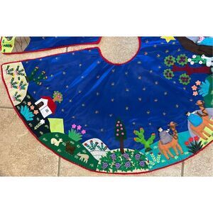 Peru ARPILLERA Patchwork Christmas Nativity Tree Skirt OOAK Peruvian Applique