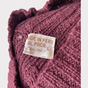 Peruvian 100% Alpaca Sweater Cable Knit Purple Shawl Collar Long Sleeve Size Large L Thick Heavy Travel Winter Fall Autumn
