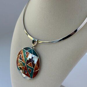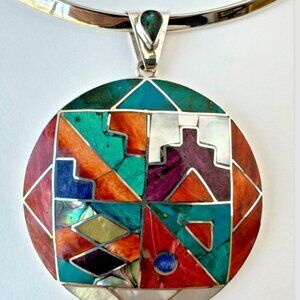 Peruvian 950 Sterling Silver Pendant | Circular Mosaic Inlay with Natural Stones