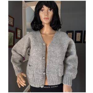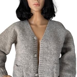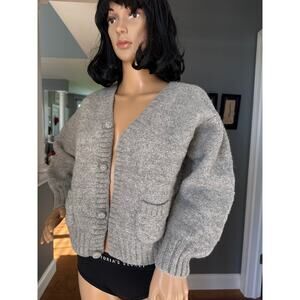 Peruvian Alpaca V neck Sweater in gray faux button down side pockets medium
