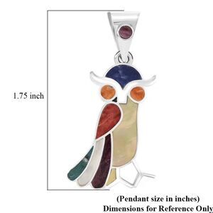 Peruvian Artistry Multi Gemstone 1.10 ctw Owl Pendant Necklace Sterling Silver