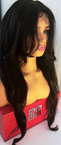 Custom made wig. Peruvian Body Wave 24" 22" 20" Frontal 18" w/cut. The wig fits head small to medium.