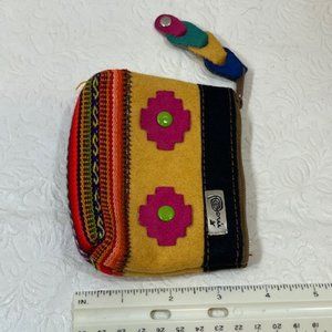Handmade by Peruvian Artisans, this lovely coin purse is made of locally sourced wools, organic dyes, and faux leather.