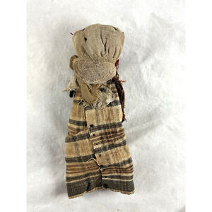 Handmade vintage Peru Chancay burial textile doll. It is 10 inches in length from head to bottom of its skirt. She holds two babies. Bright, clean, odor free.
