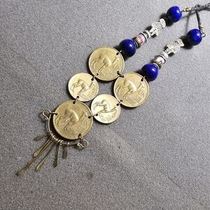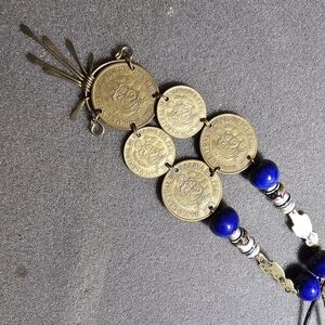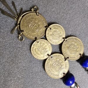 Peruvian Coin Necklace with UN SOL/HALF SOL DE ORO Coins Beaded Artisan Made with leather cord 28 inches long see pictures for reference