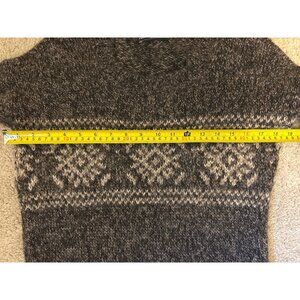 Peruvian Connection 100% Alpaca Brown Cream Fair Isle Long Cozy Sweater Women's Size S