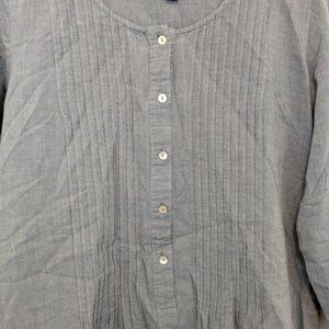 Peruvian Connection 100% Cotton Pleated Peasant Blouse Size 6 Blue Button