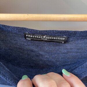 Peruvian Connection 100% Pima Cotton Blue Striped 3/4 sleeve Knit Dress- Size M