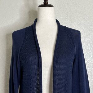Peruvian Connection 100% Pima Cotton Navy Blue Open Front Cardigan, Sz Medium