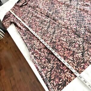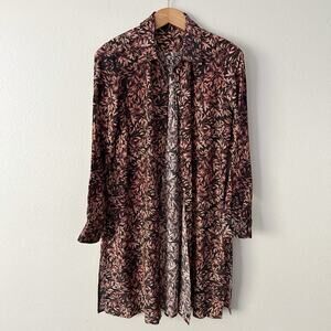 Peruvian Connection 100% Silk Leaf Print Long Sleeve Collared Tunic Size Large